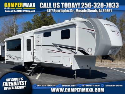 With any Cardinal fifth wheel by Forest River you will enjoy affordable luxury at every turn. These models are constructed with residential fiberglass insulation in the roof and floor, a sectioned ABS plastic underbelly armor, and a vacuum bonded, welded aluminum structure for added strength and durability. You will also find seamless roto-cast holding tanks, an outdoor shower, and 4-point auto leveling for quick and easy setup. There are carpet-free living spaces, residential backsplash, motion lighting throughout, and many more comforts!