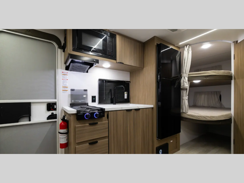 Sleeps 4 Slides 1 Length 23 ft 2 in Ext Width 7 ft 6 in Ext Height 10 ft 6 in Hitch Weight 510 lbs Dry Weight 4404 lbs Cargo Capacity 1206 lbs Fresh Water Capacity 39 gals Grey Water Capacity 30 gals Black Water Capacity 30 gals Furnace BTU 20000 btu Number Of Bunks 2 Available Beds Queen Refrigerator Type Extra Large Black Glass 12V Cooktop Burners 2 Number of Awnings 1 Water Heater Type On Demand AC BTU 13500 btu Awning Info 15' Power w/Adjustable Legs & LED Light Strip Axle Count 1 Shower Type Standard Electrical Service 30 amp Similar Floorplans