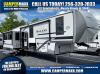Sleeps 8 Slides 2 Length 37 ft 10 in Ext Width 8 ft Ext Height 13 ft 3 in Hitch Weight 1985 lbs Dry Weight 10064 lbs Cargo Capacity 3921 lbs Fresh Water Capacity 57 gals Grey Water Capacity 62 gals Black Water Capacity 30 gals Number Of Bunks 2 Available Beds Custom King Refrigerator Type 12V Refrigerator Size 16 cu ft Cooktop Burners 3 Number of Awnings 2 Water Heater Type On Demand Tankless AC BTU 15000 btu TV Info LR 50" LED Smart TV Awning Info 9' 6" and 18' Electric with LED Lights Axle Count 2 Washer/Dryer Available Yes Shower Type Walk-In Shower Similar Floorplans