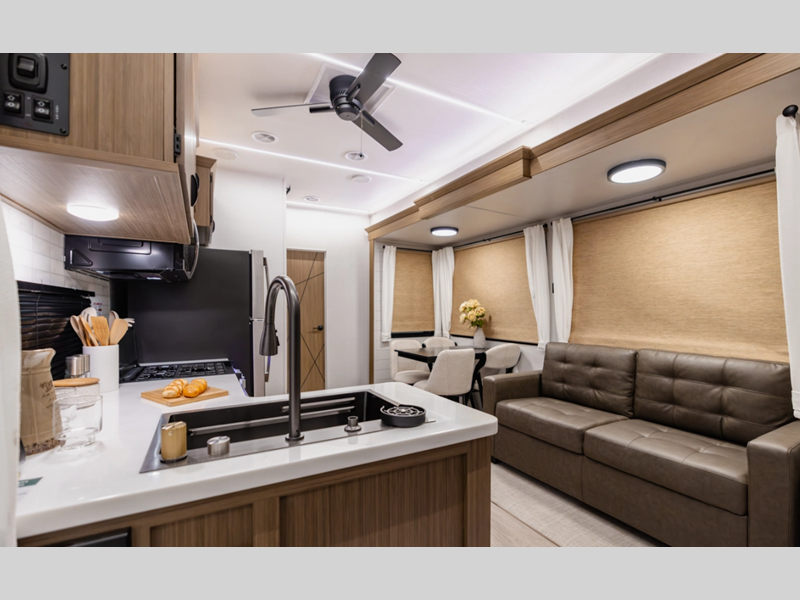 Enjoy crystal-clear sound with our JBL 3-Zone entertainment center, perfect for movie nights or game days. And, cook up a storm in style with our stainless steel kitchen appliances. Some of the new features you will enjoy include a Versa-sink, TFL black walnut entertainment shelves, and stylish roller shades. There are also standard 4K awning blade lighting and a 60K tankless water heater!