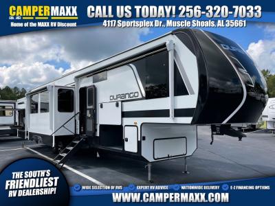 Enjoy full time living, an affordable price, and a wide body construction for more living space with every one of these KZ Durango light high-profile fifth wheels! These luxury units can be used all year round with the all-weather insulation package, the 3" x 14" foam-core in-floor straight-line heating system with a 35,000 BTU furnace, and the 15,000 BTU ducted roof A/C which optimizes the airflow by an average of 40% for better performance, cooling time, and reduction of noise. A few other construction features you will appreciate include a one piece, seamless walk-on Tufflex roofing material, Pex® in-floor heated waterlines, and a Lamilux® gelcoat fiberglass exterior. Inside, blancher  maple & morel fog cabinetry , a king size bed, and smart TVs will have you feeling like you never left home!