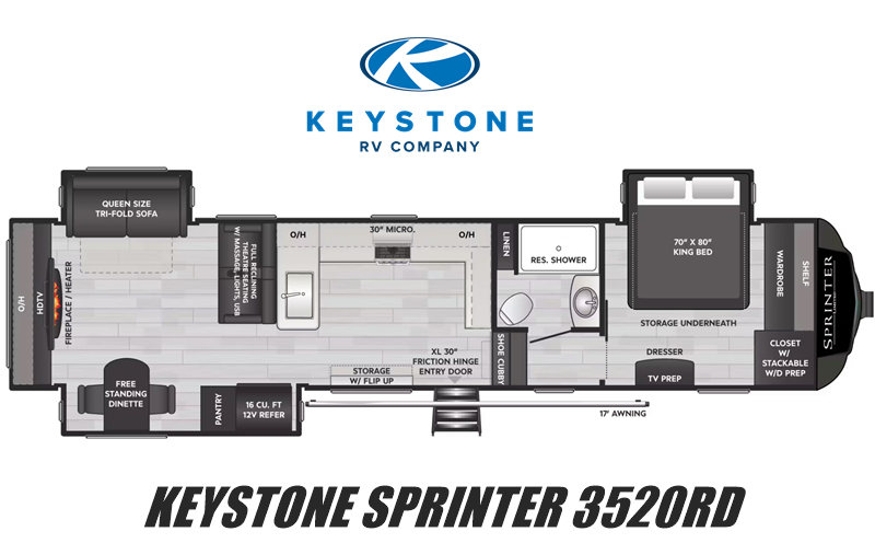 Keystone Sprinter fifth wheel 3520RDS highlights: