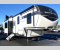Pack your bags and head to your favorite state park in this four slide out fifth wheel. Up front, the bunkhouse suite includes two bunk beds, a desk, a slide out with a TV hookup, and a half bath for convenience. You'll have the master bedroom all to yourselves with a king bed slide out, plenty of storage, and a full rear bath with dual bath sinks so you both can get ready for bed at once. The chef of your group can make meals on the three burner gas range or in the oversized 30" microwave, and food can be stored in the 12V refrigerator and pantry. A booth dinette provides a place to dine, or you can choose the optional free-standing dinette. And the full reclining theater seating across from the fireplace and 50" TV will make movie night cozy!